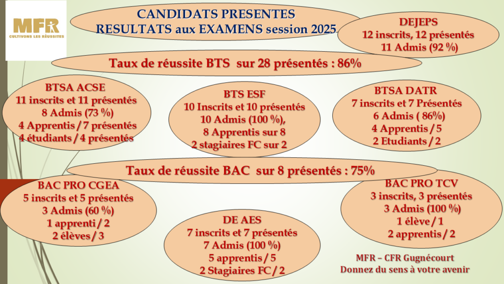 La MFR – CFR de Gugnécourt présente ses résultats de réussite aux diplômes sur ses réseaux sociaux et sur le site internet et lors des Journées Portes Ouvertes.